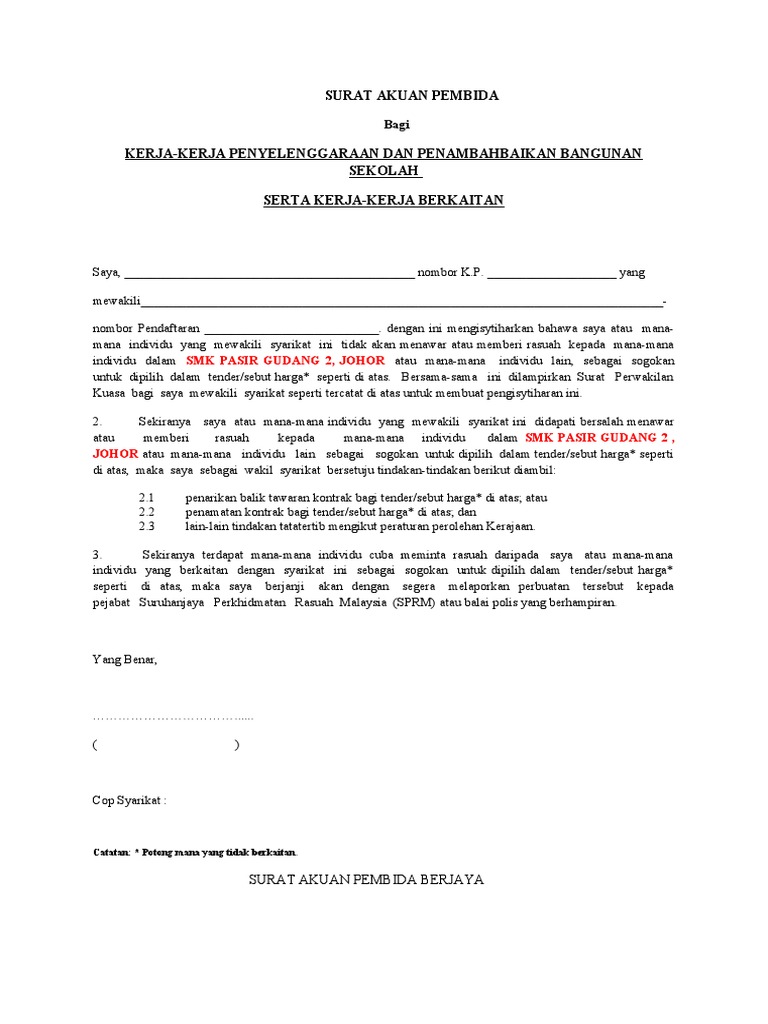 Surat Akuan Pembida Pdf Google Drive