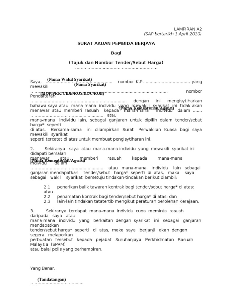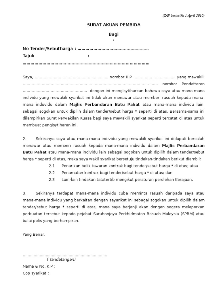 SURAT AKUAN PEMBIDA BERJAYA. Surat Perjanjian Sewa Kereta Tarikh 22 Mac 2013 No Kenderaan Model Tarikh Maklumat Penyewa Nama Site Analysis Analysis Surat. Contextual translation of surat akuan pembida ditandatangani into English.