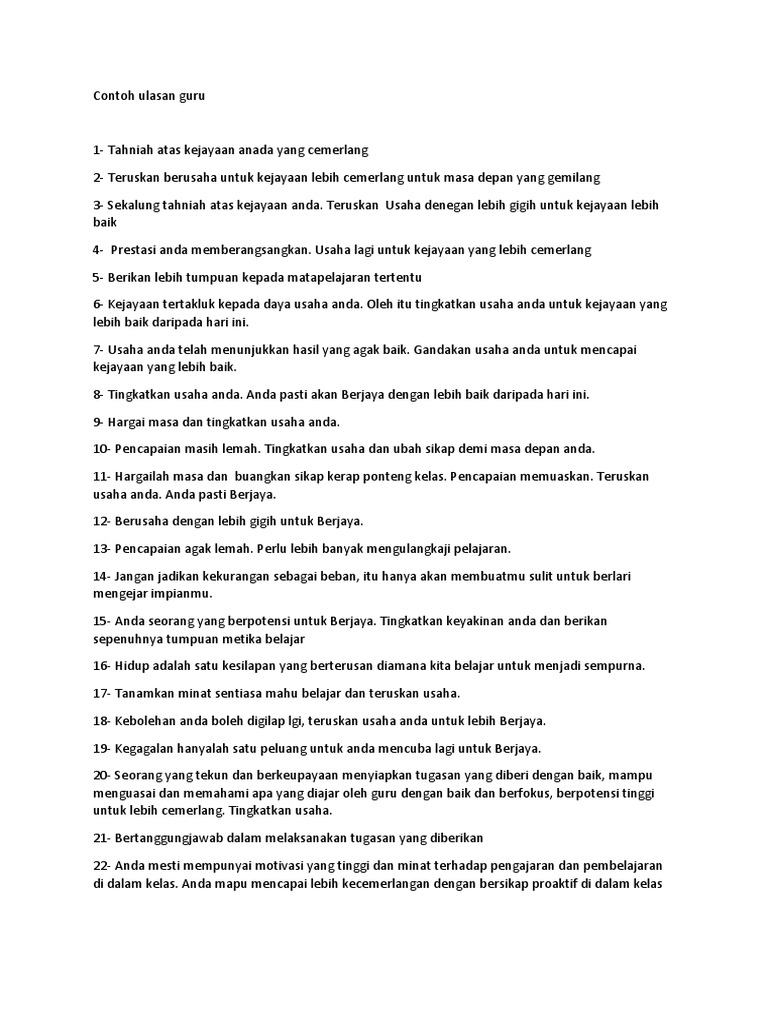 Contoh Ulasan Untuk Rujukan Guru Kelas Guru Subjek Pdf